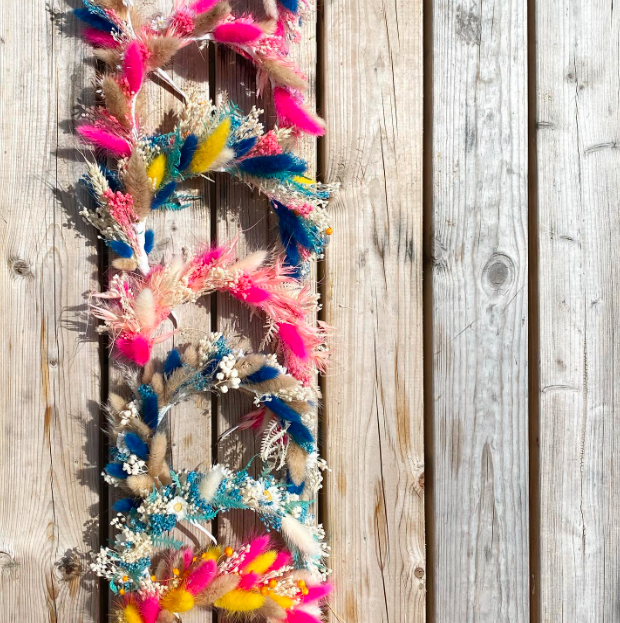 This fab wooden hoop experience uses a woven twig base to attach dried flowers for a fantastic statement piece. Suitable for complete beginners.