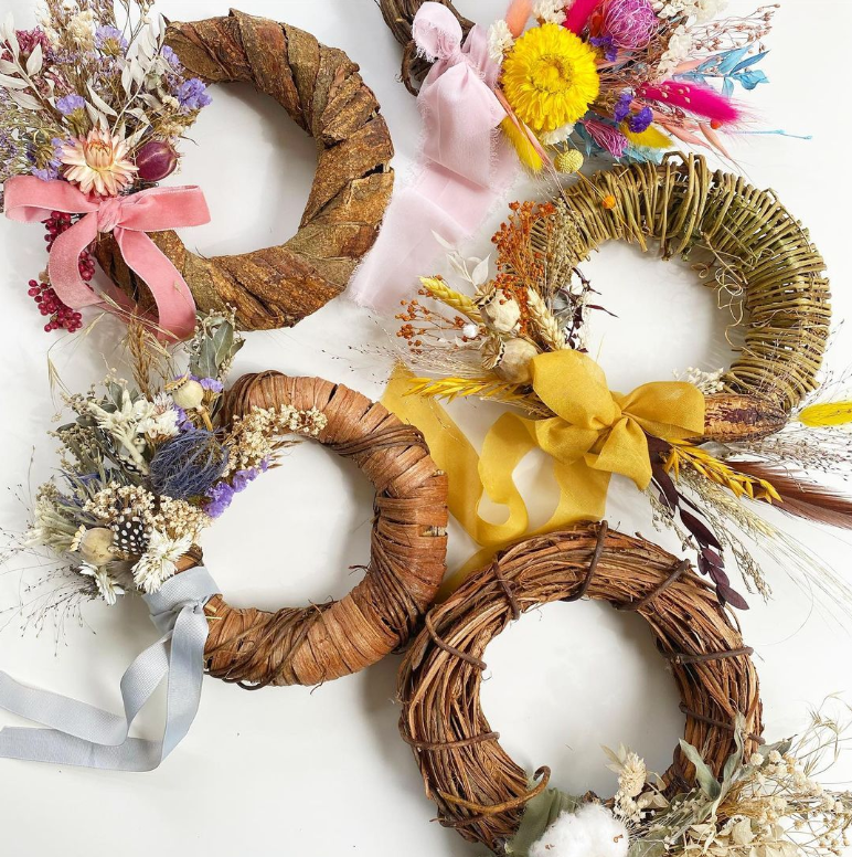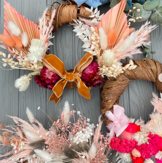 This is our most popular corporate workshop experience. Suitable for complete beginners, you create a whole dried flower wreath.